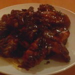 Вот типа такого должно получиться. Мягкая куриная мякоть под хрустящей карамелью. Вкус на грани, балансируя между сладким и соленым, буквально на острие ножа. И еще заметьте, что соль мы не добавляем. Она не нужна. Это блюдо для любителей азиатской кухни. Получается что-то такое сладко-пряное.