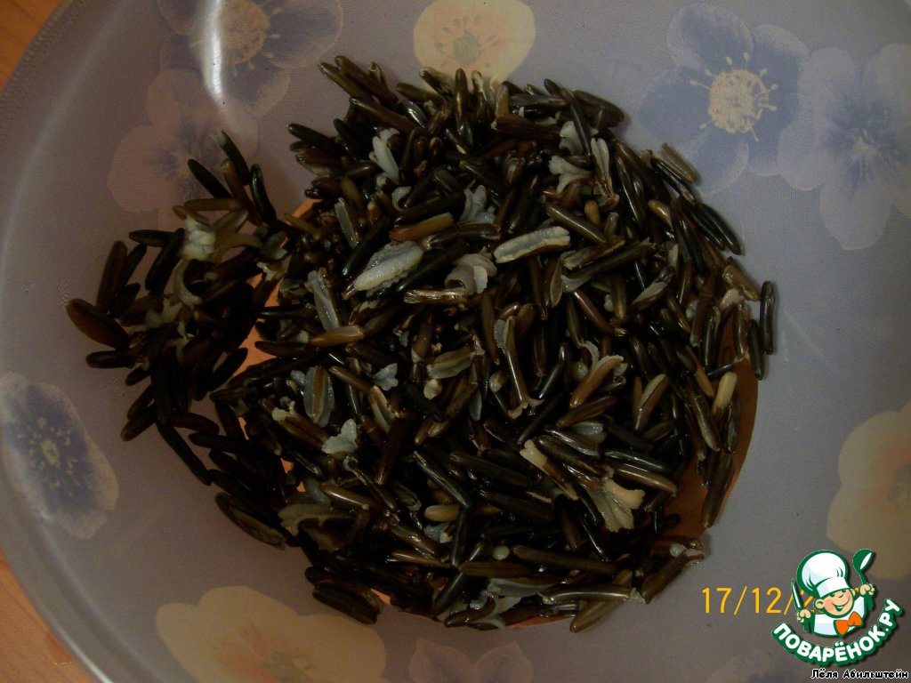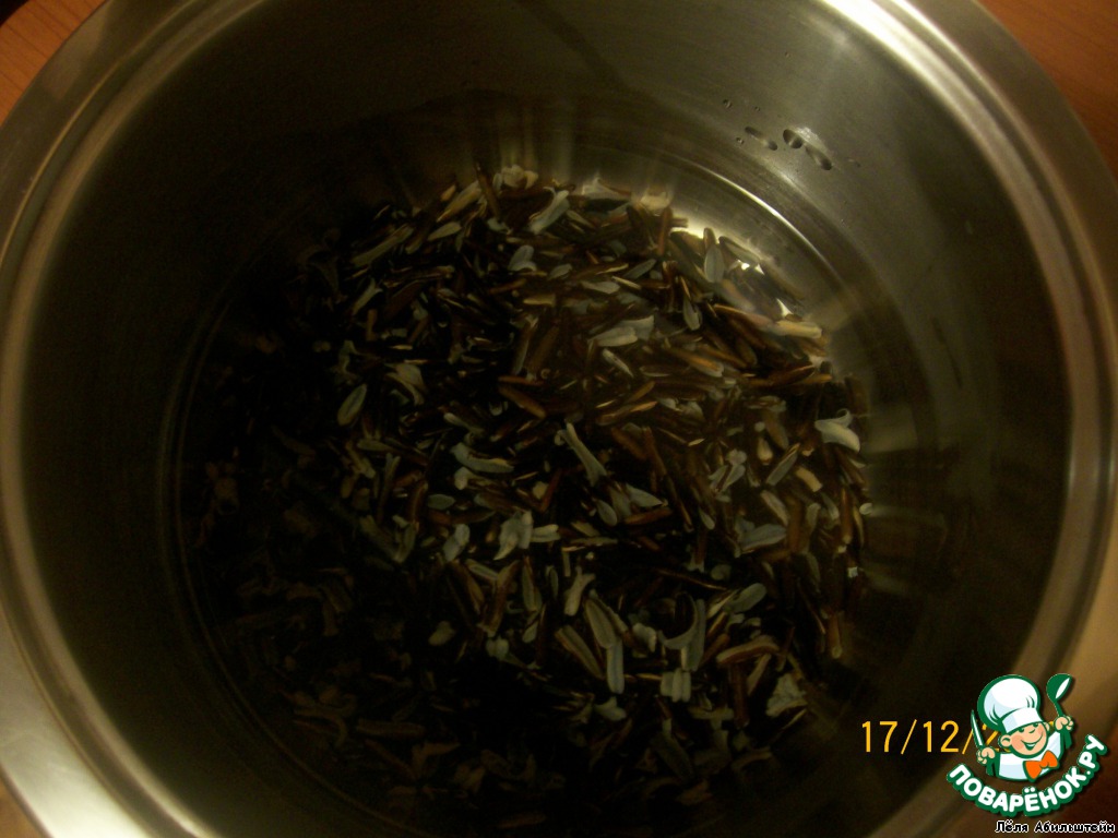 Дикий рис залить кипятком, накрыть и оставить на 12 часов.