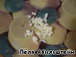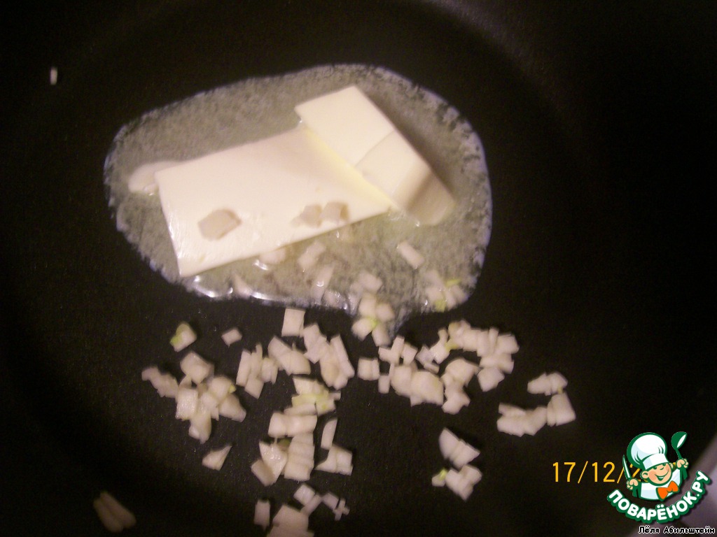 Растапливаем масло, слегка обжариваем чеснок, 30 сек.