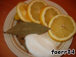 Для начала нам нужно приготовить маринад. Для этого нам потребуется лимон, лавровый лист, душистый перец, гвоздика и соль (3 ст. л. с горкой)