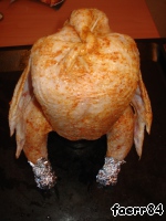 Смазываем специями, ставим на противень, в противень наливаем 2 стакана воды и отправляем в духовку на час (у меня запекалась 1час 20мин), периодически поливая соком из противня