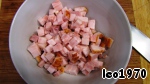 Порубите копченую свиную грудинку кубиками в полсантиметра.