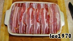 Накройте фарш оставшимися частями бекона. Не волнуйтесь, если бекон будет налезать друг на друга. Это нормально.