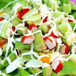 Авокадо очистить от кожицы. Все мелко порезать и перемешать с майонезом. Посолить.