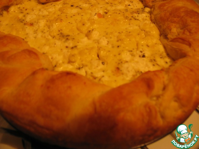 Заливаем яично-сливочной смесью. И прижимаем "бортики" из теста в центр пирога.