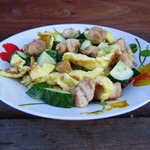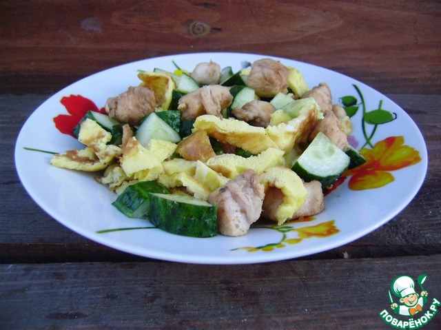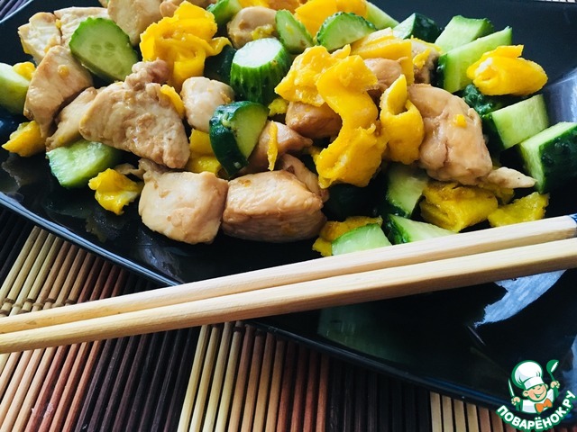 Рецепт «Курица по-японски с огурцами и омлетом»: