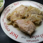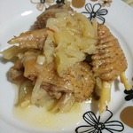 Получается очень вкусно, хотя я и не описывал этот рецепт. Но вот сегодня я вдруг вспомнил, что в детстве мама часто готовила другое очень простое блюдо. Это тушенные кусочки курицы в большом количестве лука.