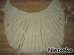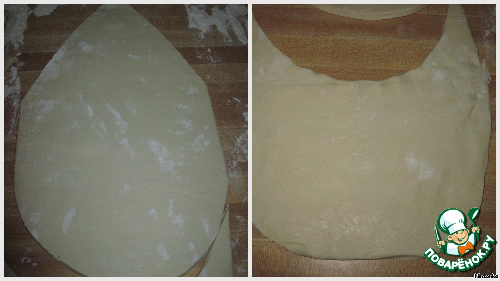 • Посыпаем стол мукой и раскатываем тесто в прямоугольник.