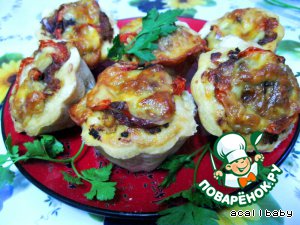 Вчера осталось немного соленого дрожжевого теста, поэтому решила придумать с ним что-нибудь из подручных продуктов. Получились вот такие румяные маффины, которые очень просты и быстры в приготовлении, но в то же время вкусные!