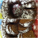 Ввести часть муки (примерно 2/3), затем по очереди орехи - перемешать, тыкву - перемешать и оставшуюся часть муки. В самом конце добавить кофе.
