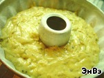 Готовое тесто выложить в подготовленную форму. У меня форма стародавняя - алюминиевая, поэтому я смазала ее маслом и присыпала мукой. Поставить в предварительно разогретую духовку