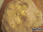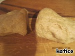 Подошедшее тесто слегка обмять, разделить на 2 части, одна часть чуть больше другой.