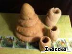 Так же выпекаем 3 разных блина, раскатываем их где-то толщиной в 1 см. Конус - используем как трафарет также фольгу. И пеньки, я делала на скалке и отправляла в духовку вместе с ней.