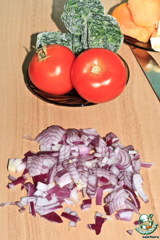 Шпинат, естественно, имеется в виду свежий, но у меня был замороженный. Если Вы используете свежий, его необходимо мелко нарезать.