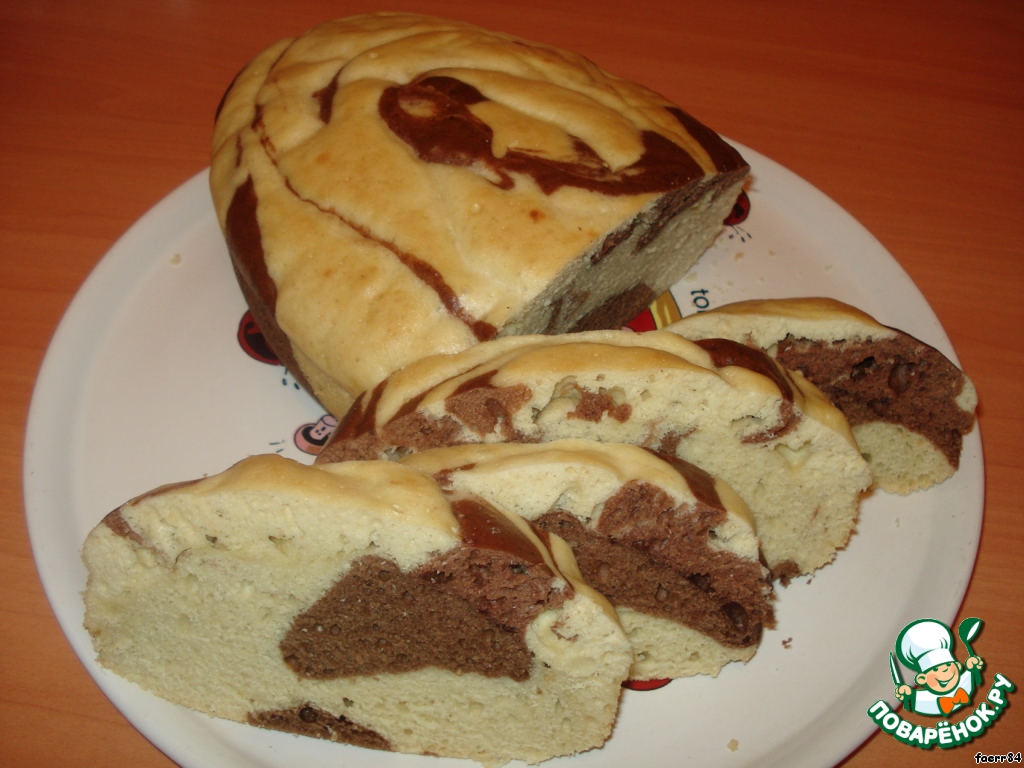 Делим тесто на 2 части, в одну часть добавляем какао. -