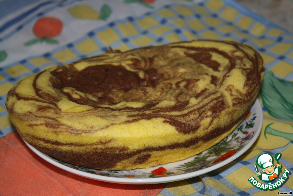Берем чашу для риса ( я вместо чаши для риса использовала контейнер для СВЧ с крышкой). Выстилаем дно чаши фольгой, либо смазываем форму (я смазывала, бисквит отлично вывалился из контейнера) и добавляем поочередно по ложке белого и темного теста.