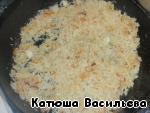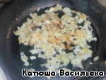 В сковороде растопить сливочное масло. Небольшую луковицу мелко нарезать и немного поджарить (я жарю до золотистого цвета, для мужа).