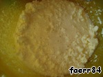 Начинаем с того, что смешиваем яйца, размягченный маргарин, молоко, соду гашенную уксусом, крахмал и постепенно добавляем муку.