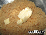 Смешиваем крошку с масляным кусочком,