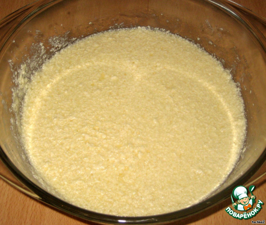 Добавить разрыхлитель, муку и замесить не очень густое тесто.