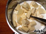 Для приготовления суфле из белого шоколада замочите 2 ст. л. желатина в 4 ст. л. воды.