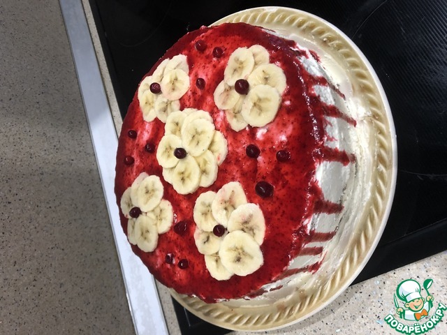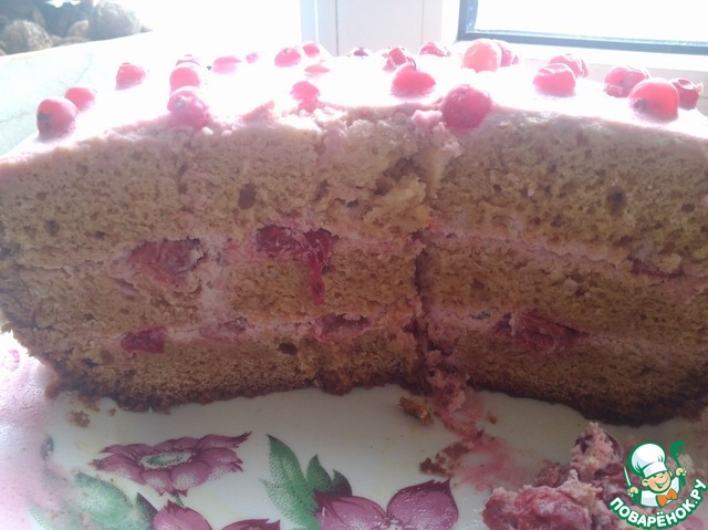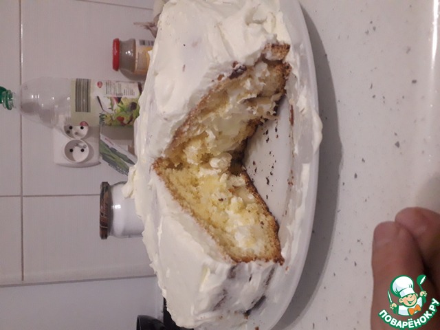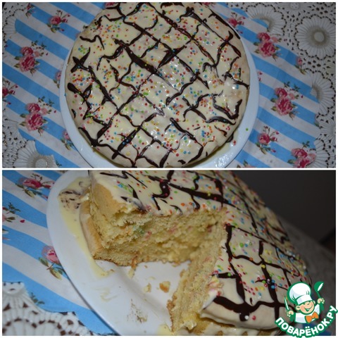 Форма у меня была большая, разрезала на два слоя, идеально для домашнего тортика.