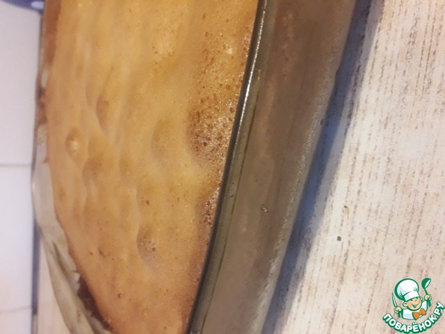 [+5]На всякий случай поставила воду в духовку и готовила без конвекции. 👍 Вкусный, мягкий, упругий бисквит получился.