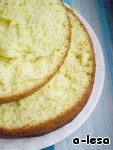 Еще на заметку кулинарам. Этот бисквит можно испечь и вполовину ингредиентов, т. е. 2 яйца, сахара 75 гр, и муки 75 гр, разрыхлителя 0,5 ч. л., получится не менее пышный бисквит. Только его разрезать можно будет на 2 части и форму для выпечки использовать 18 -20 -22 см.