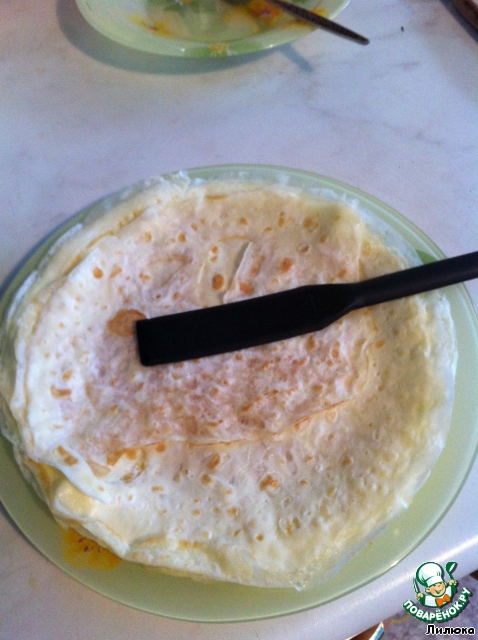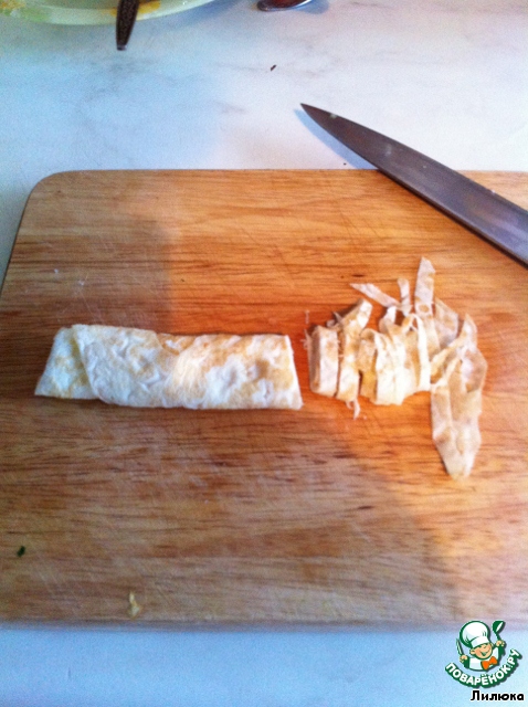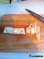 Сворачиваем получившиеся блинчики трубочкой и режем