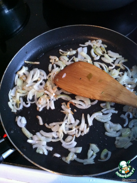 Обжариваем лук на растительном масле до готовности (чтобы стал мягким). Я в этот раз взяла 1 луковицу и оказалось маловато.