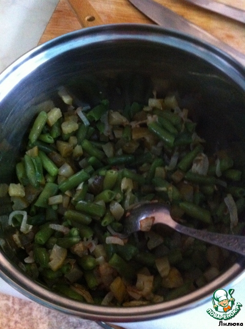 Отварили фасоль в подсоленной воде. В этот раз ей хватило 4 минуты. Но все зависит от фасоли, иногда приходится варить и по 10 мин.