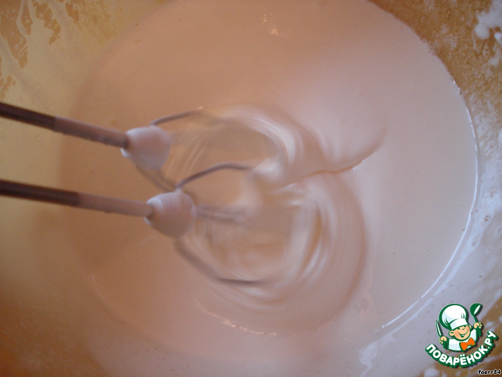 Постепенно добавляем муку и взбиваем тесто миксером до кремовой консистенции