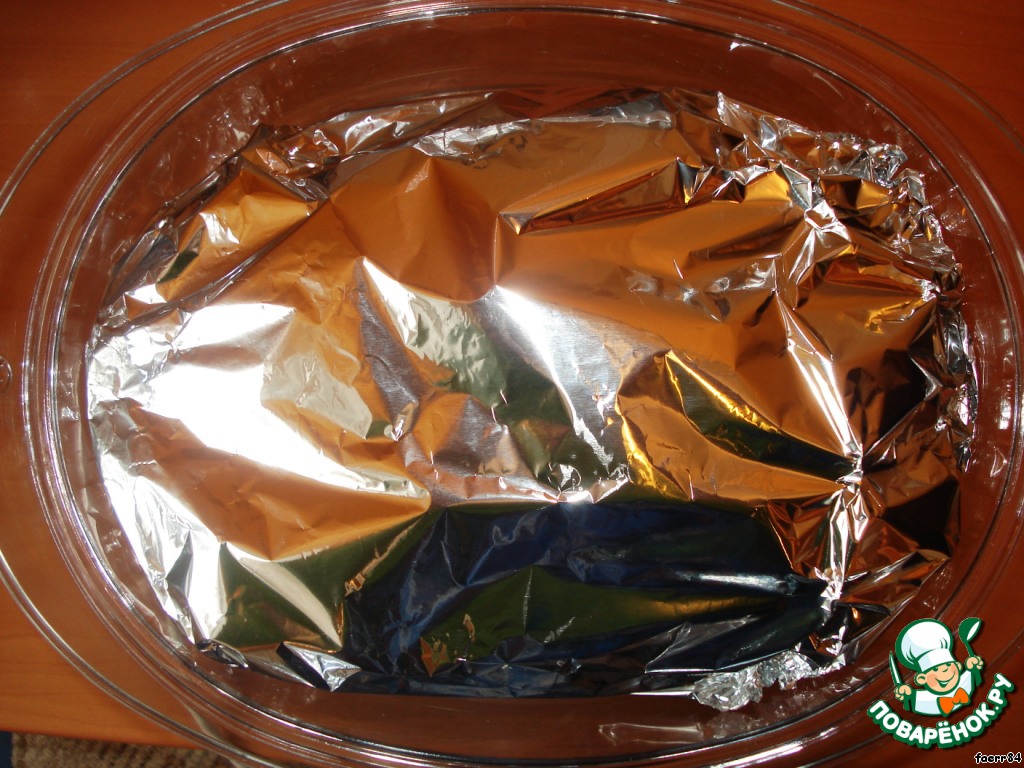 Форму обязательно закрываем фольгой (с учетом того, что тесто увеличится в размерах в 2раза). У меня пароварка на 900Вт, я включала на 1час 15мин (может, можно было и уменьшить время приготовления, но я делала, чтобы наверняка)