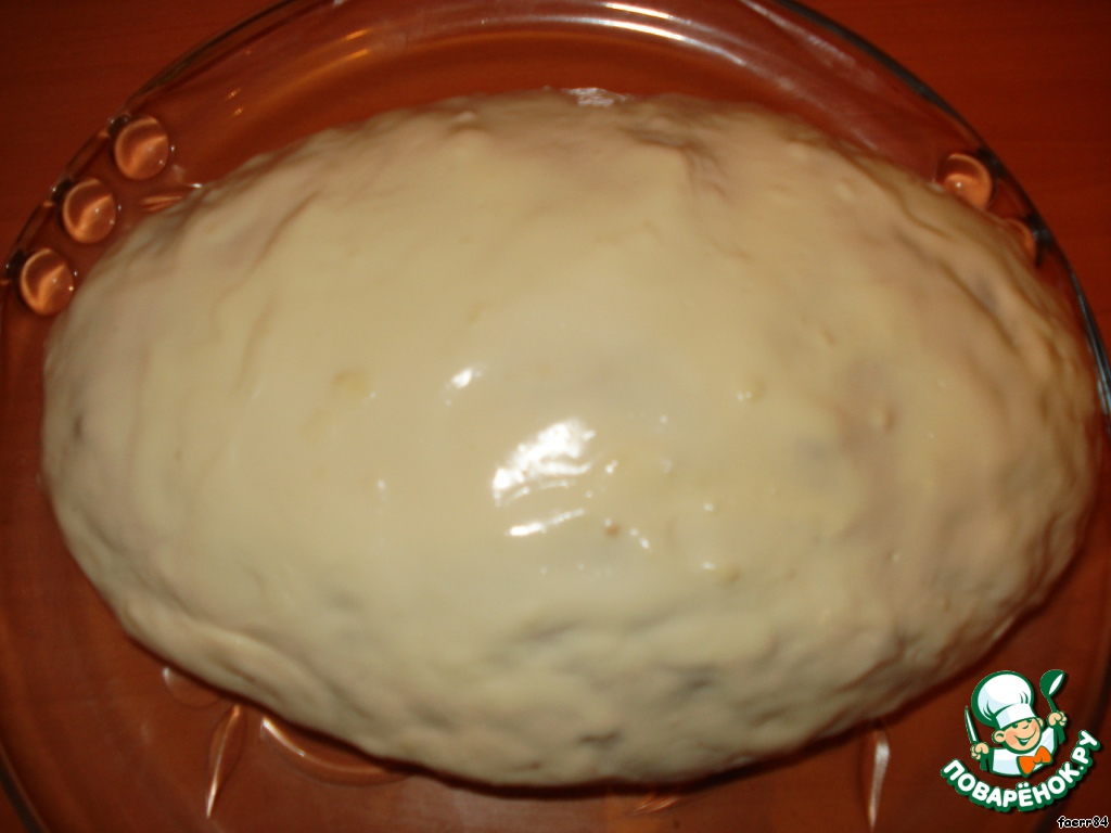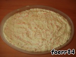 Выкладываем тесто в смазанную форму, у меня форма для риса маленькая совсем, поэтому я использовала пластиковый контейнер (размер 15см на 26см)
