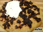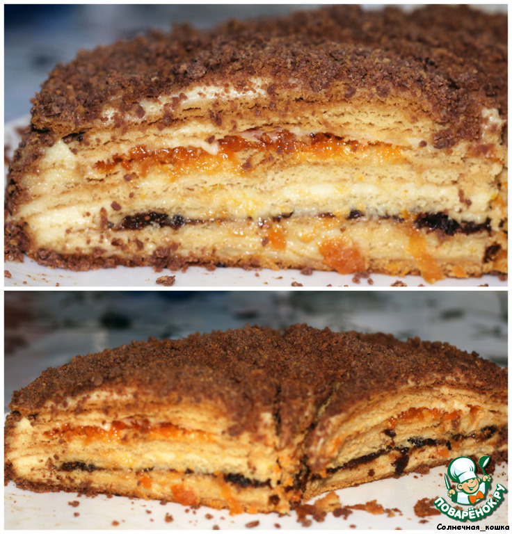 Далее следует корж, смазанный курагой и кремом.