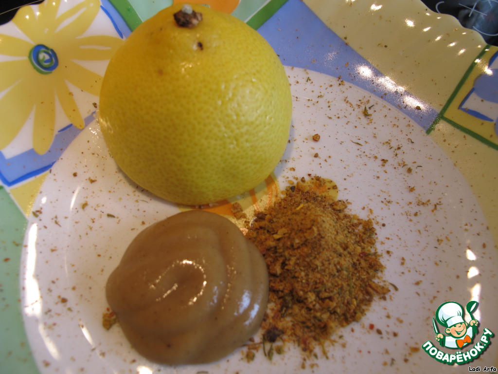 Смешаем лимонный сок, горчицу и смесь пряных трав.