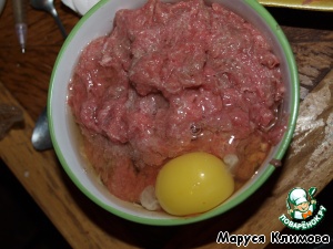 Ставим на огонь бульон или воду, а пока закипает - подготавливаем фарш для фрикаделек. В фарш вбиваем яйцо и чуть подсаливаем, чтобы фрикадельки не получились пресными. Основательно перемешиваем.