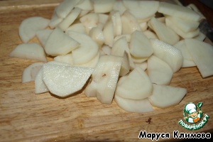 Картофель нарезаете так, как вам это больше нравится. Я люблю в супах крупную нарезку.