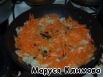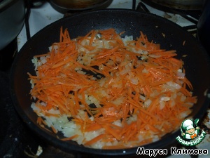 Ну, и куда ж без классики жанра? Мелко нарезаем лук, трем на терке морковь и делаем зажарку.