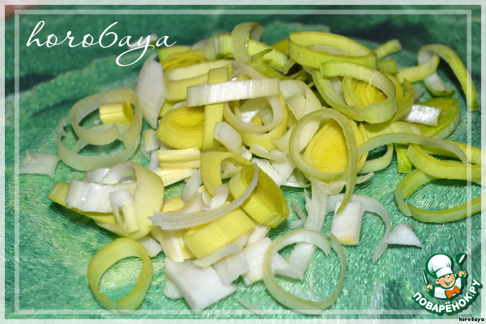 Лук-порей нарезать колечками.