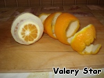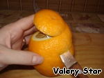 Теперь аккуратно снимаем цедру по кругу, размером 1-1,5 см. до самого конца апельсина.