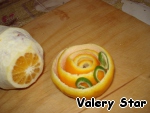 Пускай на блюде лежат разные блюда и между ними такие вырезанные розочки из кожуры. ИМХО Эффект будет более изящным.