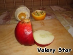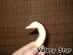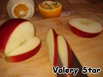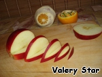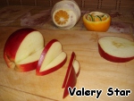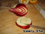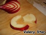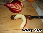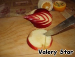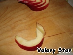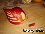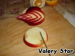 Возвращаемся к кусочку, который отрезали в самом начале работы. Делаем надрез с узкой стороны яблока примерно до середины.