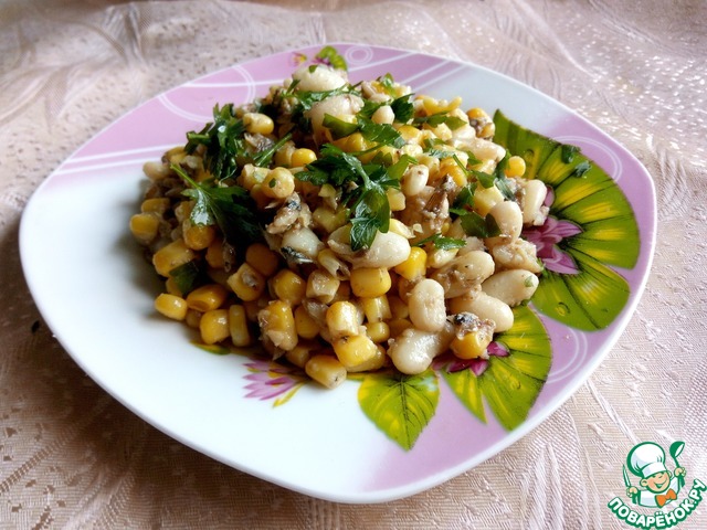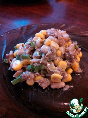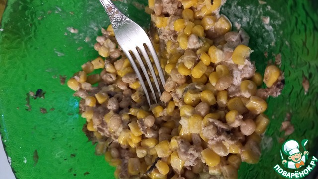 Добавить к шпротам кукурузу.