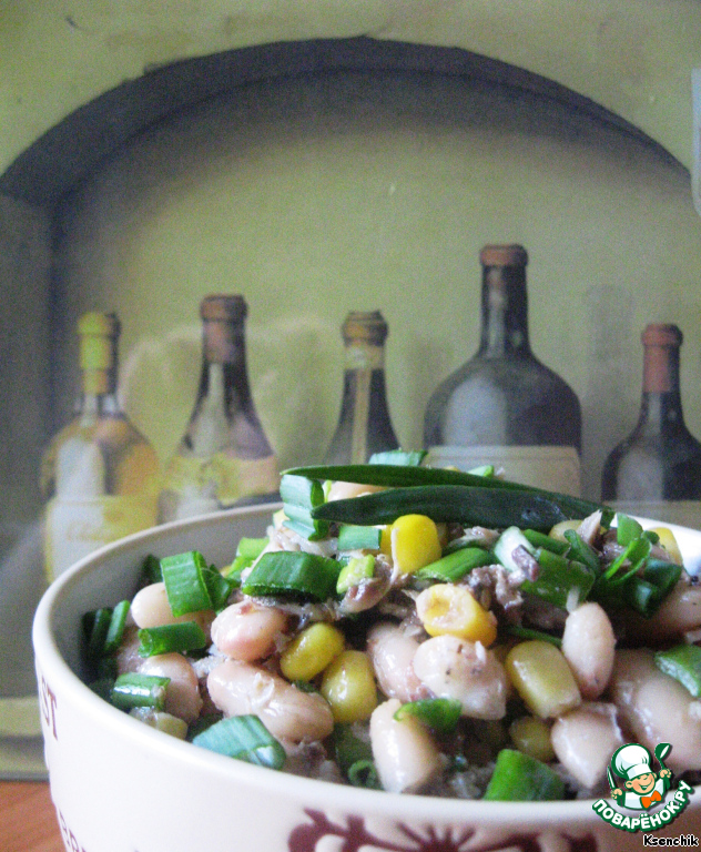 - Фасоль (консервированная белая, 200 г) — 0,5 бан.