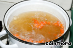 - Бульон (Куриный - 2 л воды, часть курочки, корень петрушки, половина корня сельдерея, 1 ч.л. черного перца горошка, соль, 1 лавровый лист) — 1,5 л