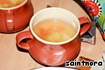 Разлить бульон с картофелем и морковкой в горшочки (занять по полгоршочка).