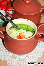 Рецепт «Суп в горшочке с яйцом и шпинатом»: