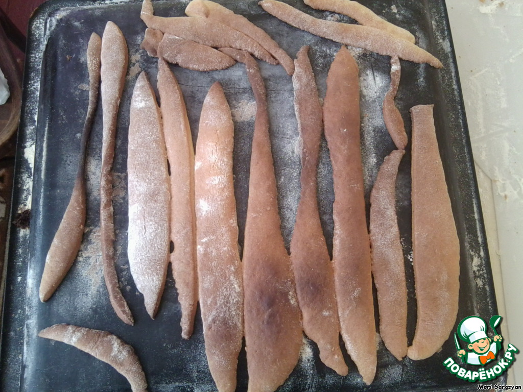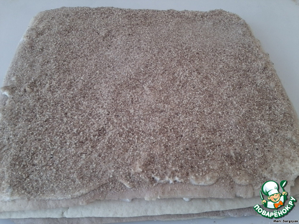 На стол насыпать немного муки, раскатать тонкие коржи.