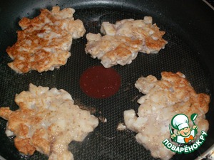 Ложкой выкладывать на разогретую с растительным маслом сковороду, обжаривать до золотистой корочки с одной стороны на сильном огне, перевернуть, закрыть крышкой сковородку и жарить ещe 3-4 минуты.